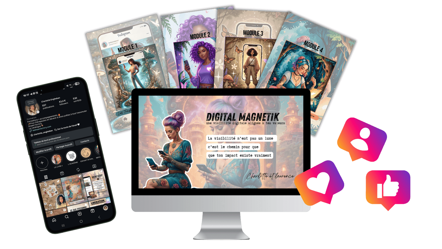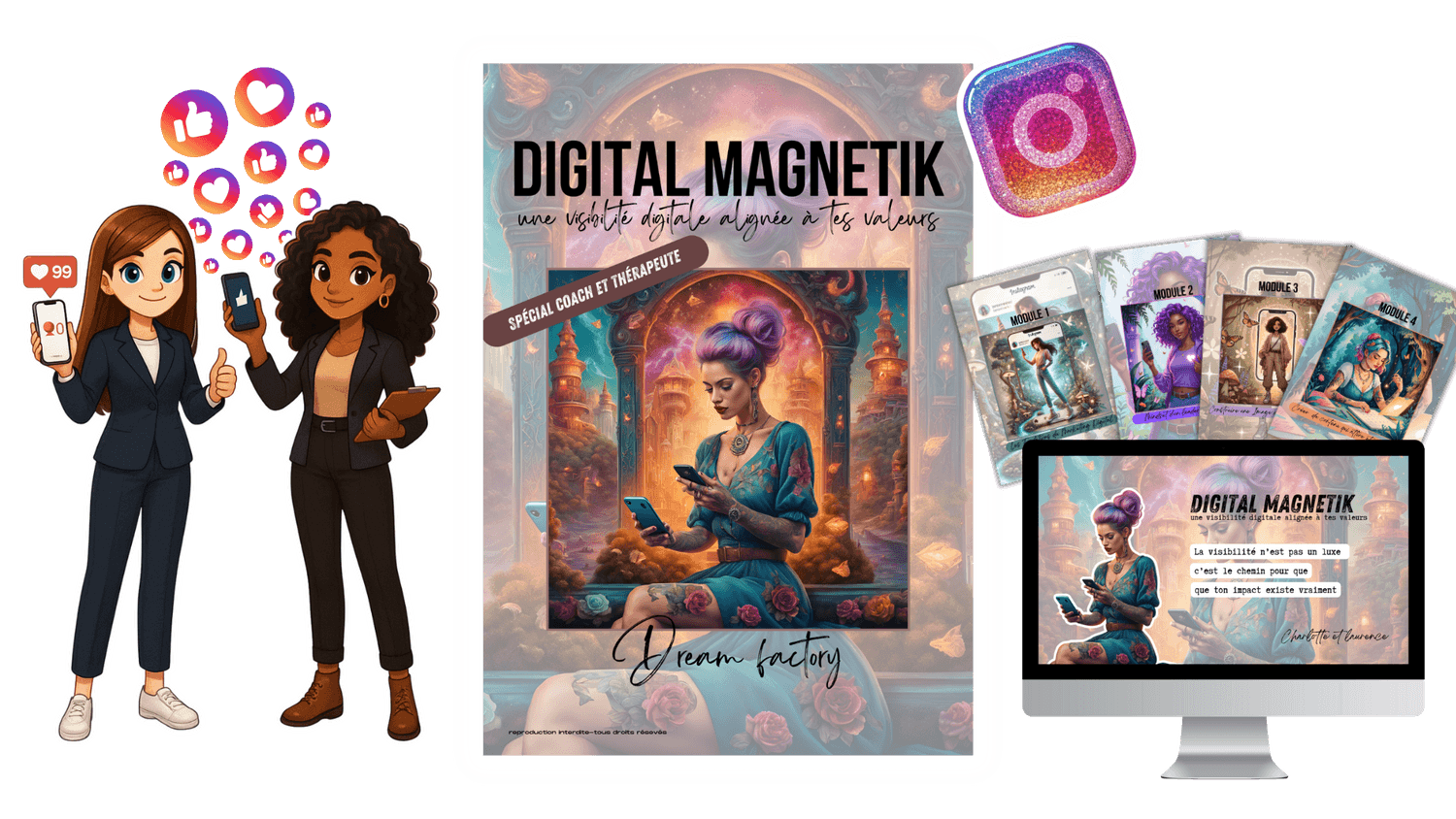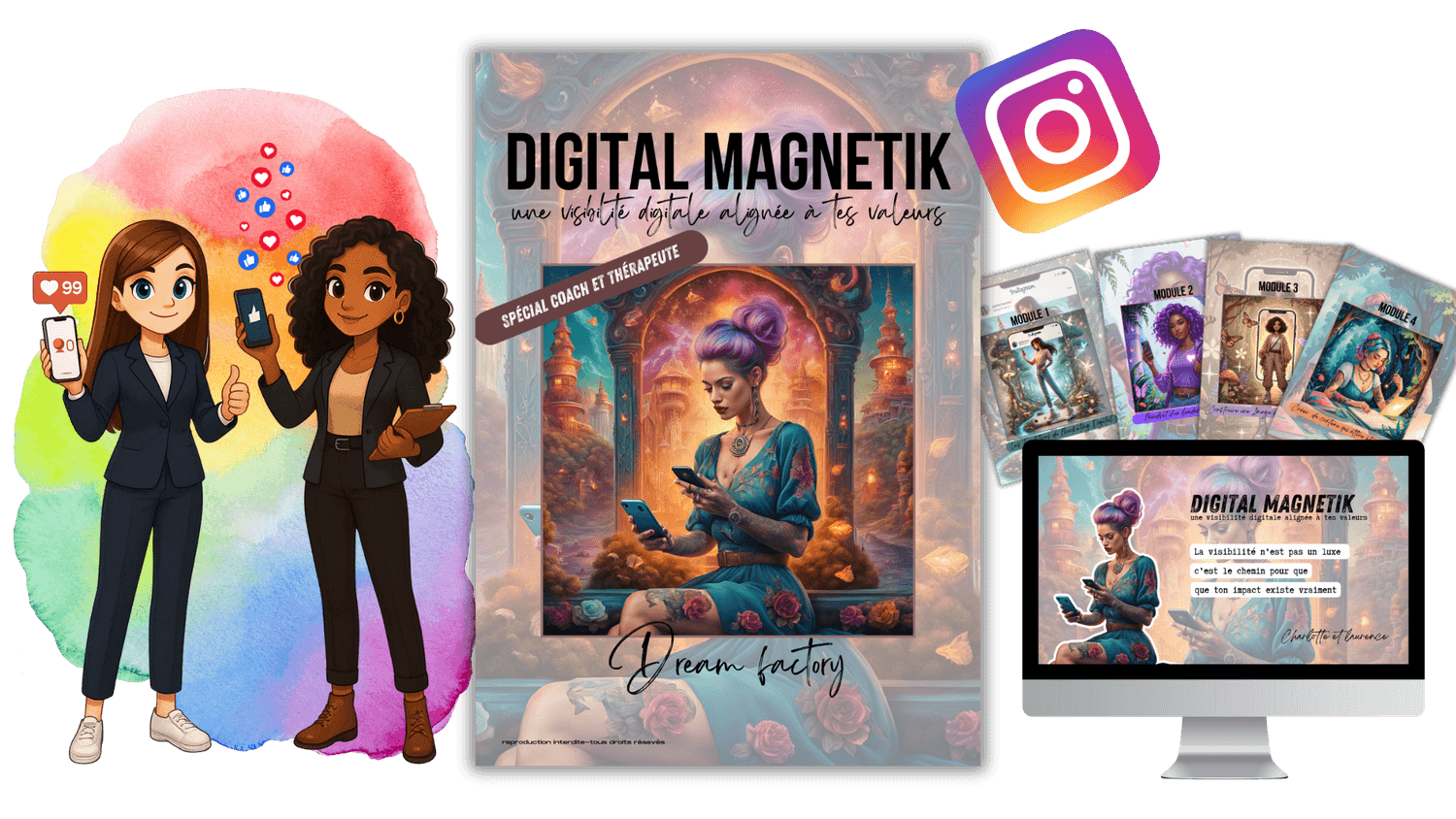 Découvre le parcours complet Digital Magnetik, la méthode pas à pas pour apprendre à rayonner sur Instagram, attirer des clients alignés et créer une visibilité éthique, consciente et puissante — adaptée aux tendances 2026.