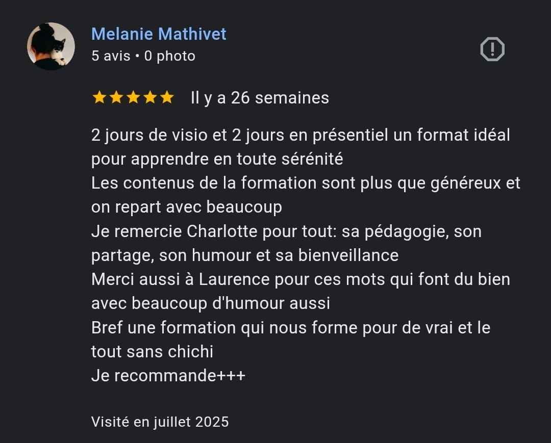 Cette certification nâest pas reconnue par lâĂtat français et ne correspond pas Ă un diplĂŽme dâĂtat. Elle atteste toutefois dâun parcours de formation sĂ©rieux, structurĂ© et encadrĂ©, dans le respect du cadre lĂ©gal des pratiques dâaccompagnement.